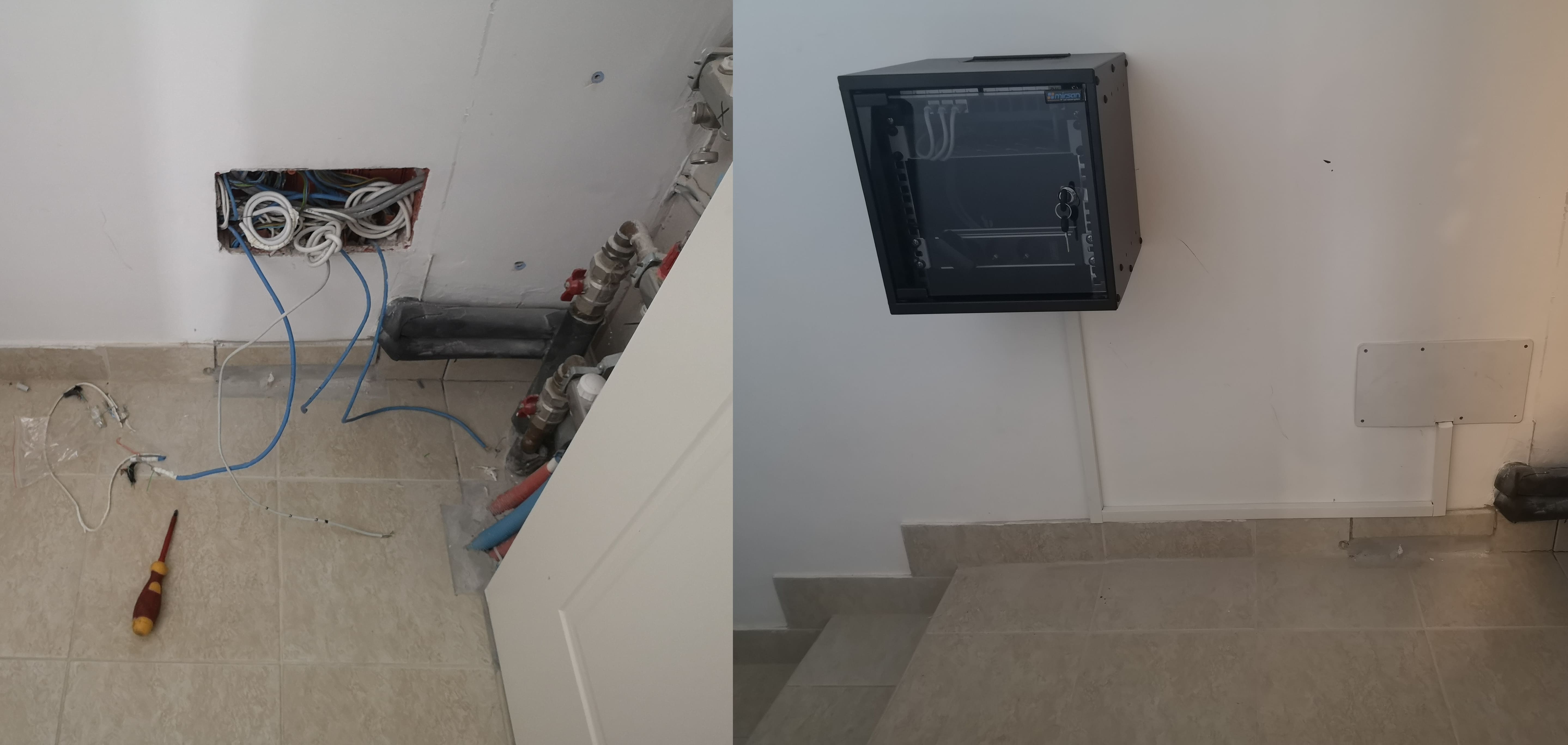 - Kábelezés (falban, kábelcsatornában, taposócsatornában, stb.)