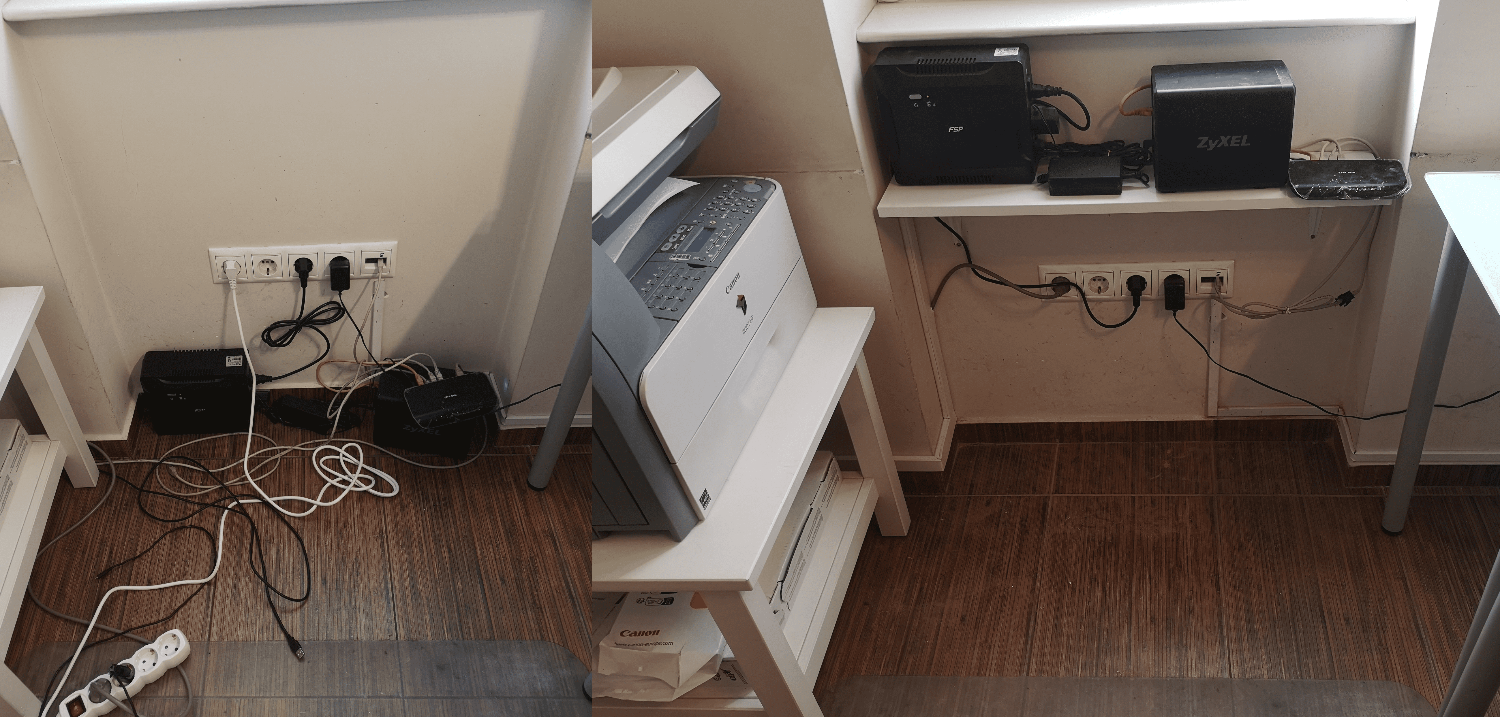 - Az íróasztalok alatti / mögötti kábeldzsungel rendezése